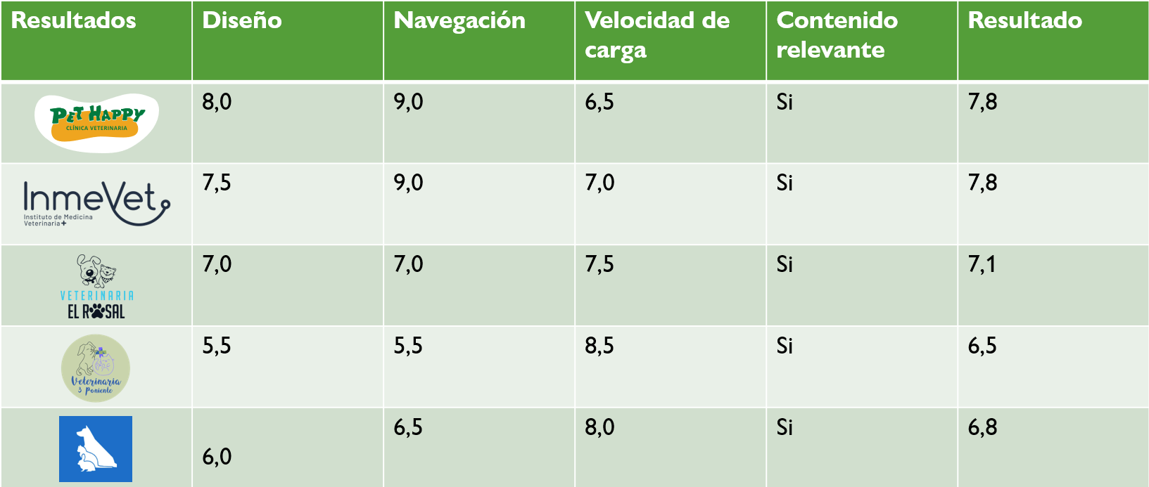 Implementamos un benchmark, para comparar diferentes sitios web de la competencia del área de la veterinaria, pudiendo así evaluar el desempeño y la efectividad, identificando fortalezas y posibles mejoras para nuestra interfaz.