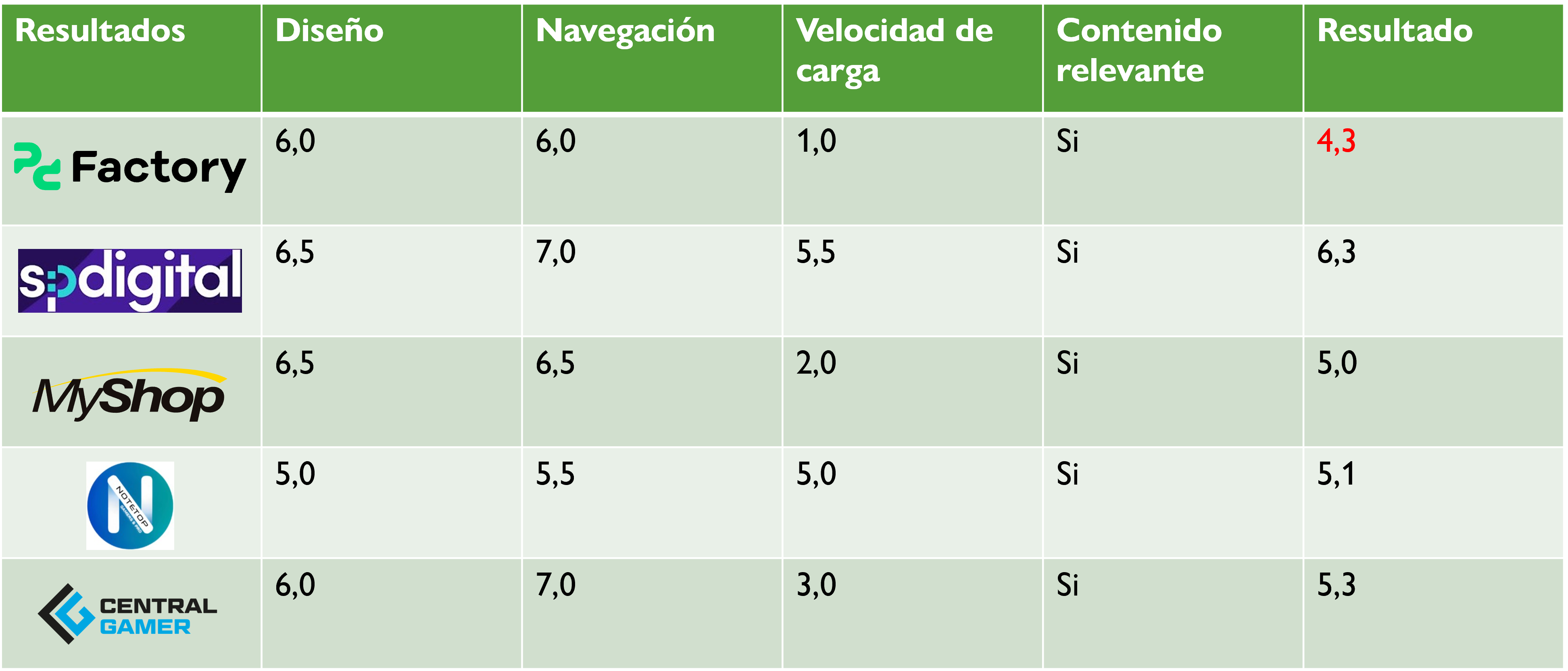 Después de analizar en detalle los cinco sitios web en términos de diseño, navegación y velocidad de carga, se pueden extraer algunas conclusiones.