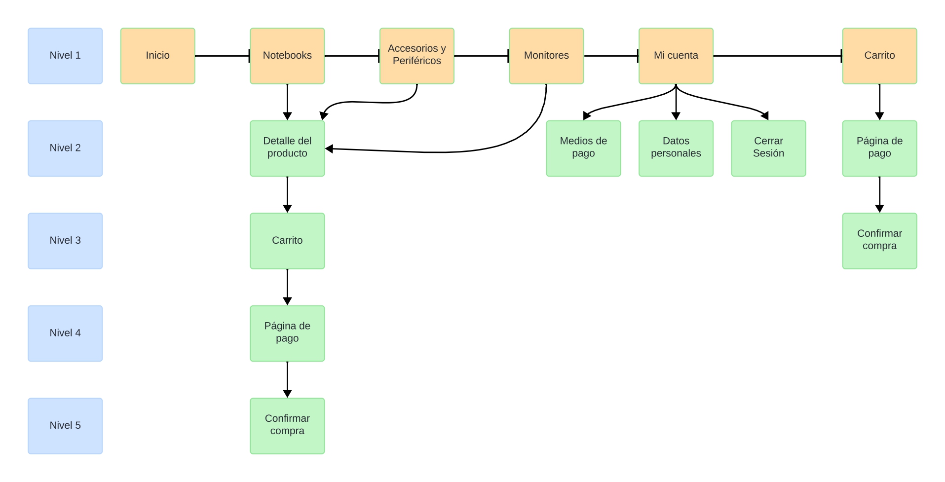 El mapa del sitio web servirá como una guía visual para organizar de manera efectiva la estructura y navegación de nuestra tienda en línea de tecnología, asegurando una experiencia fluida y coherente para los usuarios.